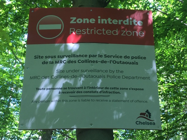 The Municipality of Chelsea, the police service and the citizens of the area thank you in advance for not venturing into this "prohibited zone" and for staying on the trail set up for this purpose.