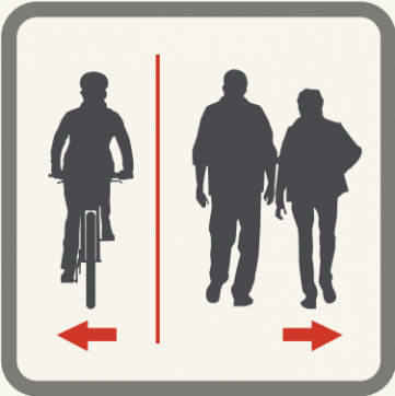 Cyclistes : à l’approche d’autres usagers, veuillez leur céder la priorité, rouler à basse vitesse et les alerter respectueusement lorsque vous les dépassez.